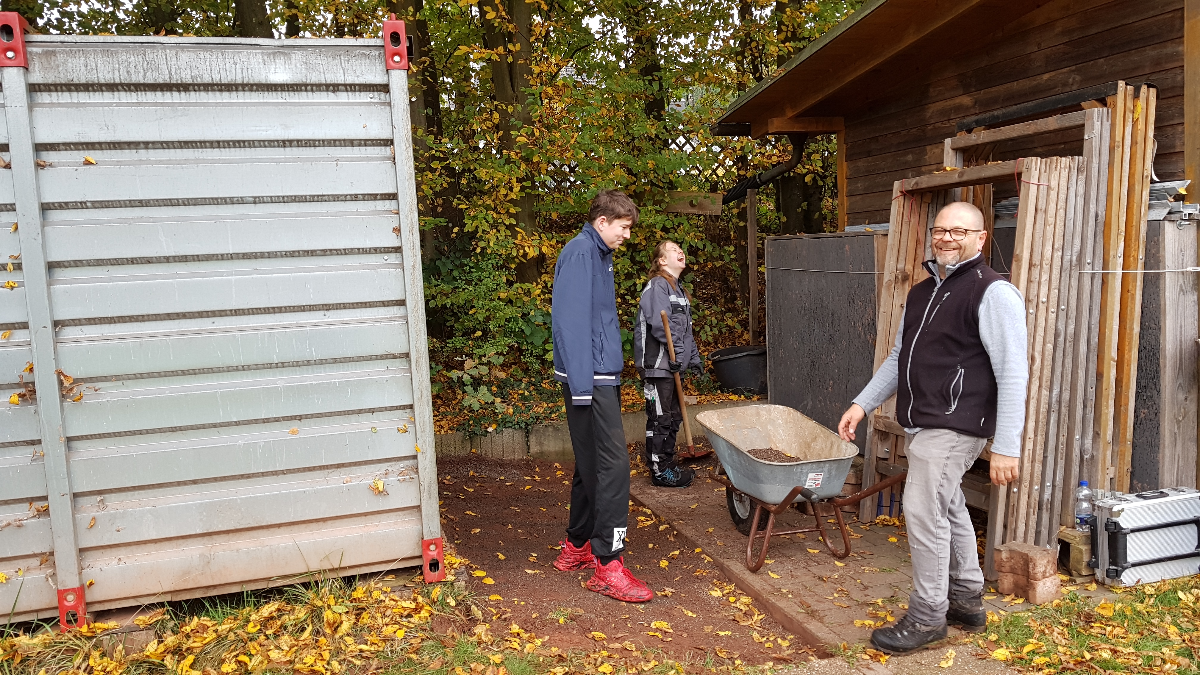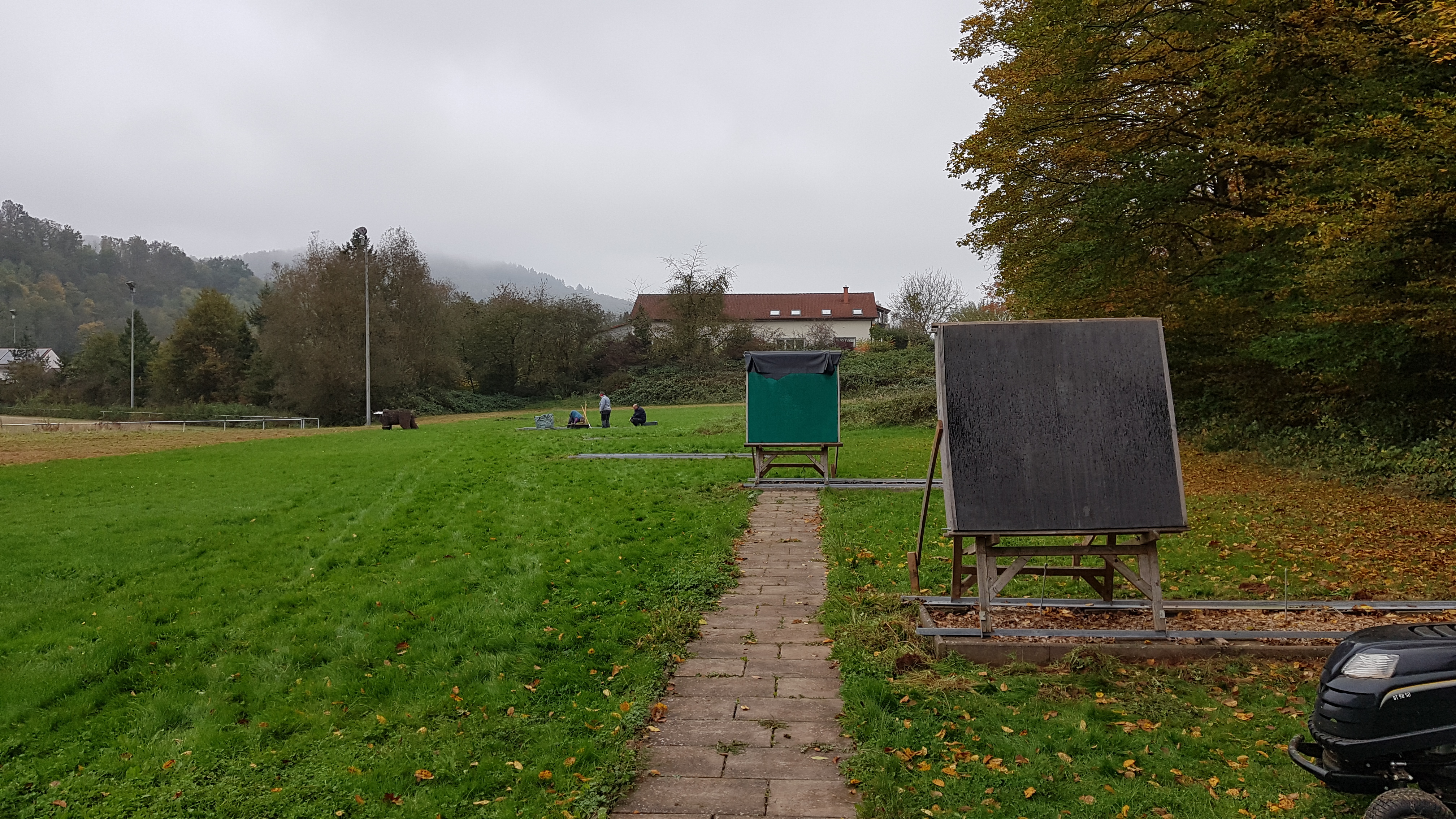 Am 26. Okt 2024 waren ab 10:00 Uhr die folgenden fleißigen Helfer im Stadion bei trockenem aber nebligen Herbstwetter zu Gange. Susanne Ließ und Sohn Markus, Michael Hofmann, Ralf Kiene, Fiona Kiene, Leoni Heller und Papa Viktor, Gabi Seibel, Jürgen Seibel, Christian Dennler, Andy Cuntz, Leon Burkhard, Johanna Kempf, Claudia Roth, Dennis Pätzold und Andreas Bauer. Es wurde an mehreren „Baustellen“ gleichzeitig angepackt. Leon durfte/musste, da er leicht genug ist, mit dem Besen bewaffnet, das Hüttendach abfegen. Christian hat sich sofort an das Freilegen der Rasengittersteine an der alten Rampe gemacht. Leoni und Fiona haben sich in der Hütte um die vorhandenen Auflagen und die allgemeine (Un)Ordnung gekümmert. Viktor, Ralf, Claudia, Jürgen und Andreas bauten die Scheiben ab Susanne, Markus, Michael und Gabi haben die Scheibenplätze aufgearbeitet. Leoni, Claudia und Fiona übernahmen die Beschaffung der Verpflegung. Nach einer ordentlichen Stärkung bei belegten Brötchen und Kaffee starteten wir zum Endspurt. Andy Cuntz hatte inzwischen die neue Rampe am Container vorbereitet. Mit vereinten Kräften wurde die Rampe aufgeschüttet und mit den Rasengittersteinen versehen. Johanna und Leon haben den Splitt mit Schaufel und Schubkarre von der alten zur neuen Rampe gebracht. Um 14:00 Uhr konnte der Arbeitseinsatz beendet werden. Vielen Dank an alle fleißigen Helfer.